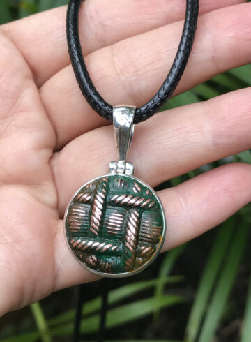 Green/Blue Lovers “Petite” Antique Button Pendant-Includes Silver Chain! #WNTI