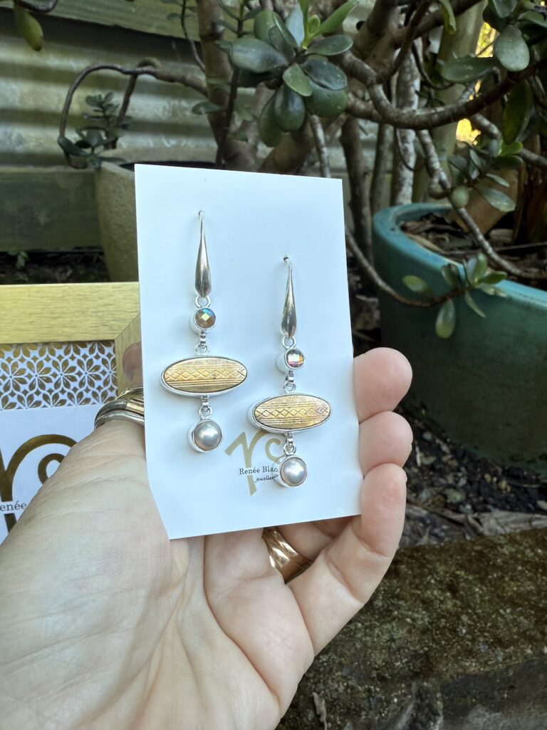 1800’s Era Gold-Toned Antique Button, Pearl & Swarovski Crystal Earrings-Includes “Bonus Earrings!” #VHYY6