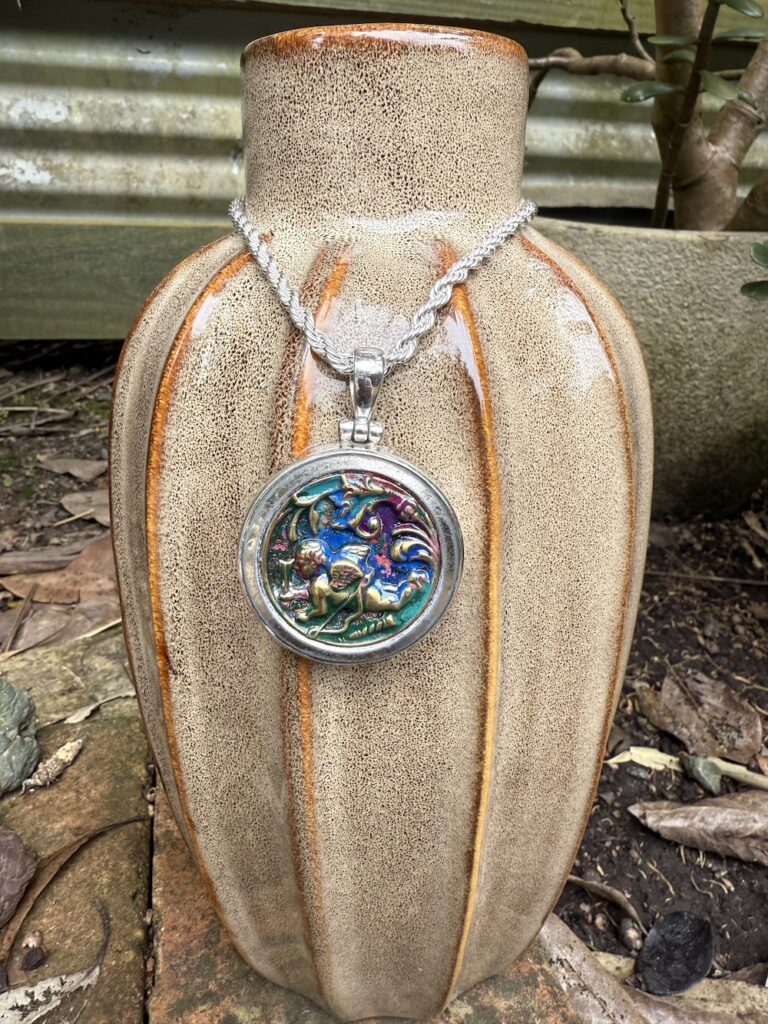 Cherub 1800’s Era Antique Button Pendant-Includes Silver Chain! #TAH2