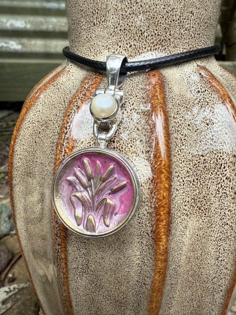 Remarkable 1800’s Era Antique Button & Pearl Pendant-Includes Black Leather Cord! #PP88