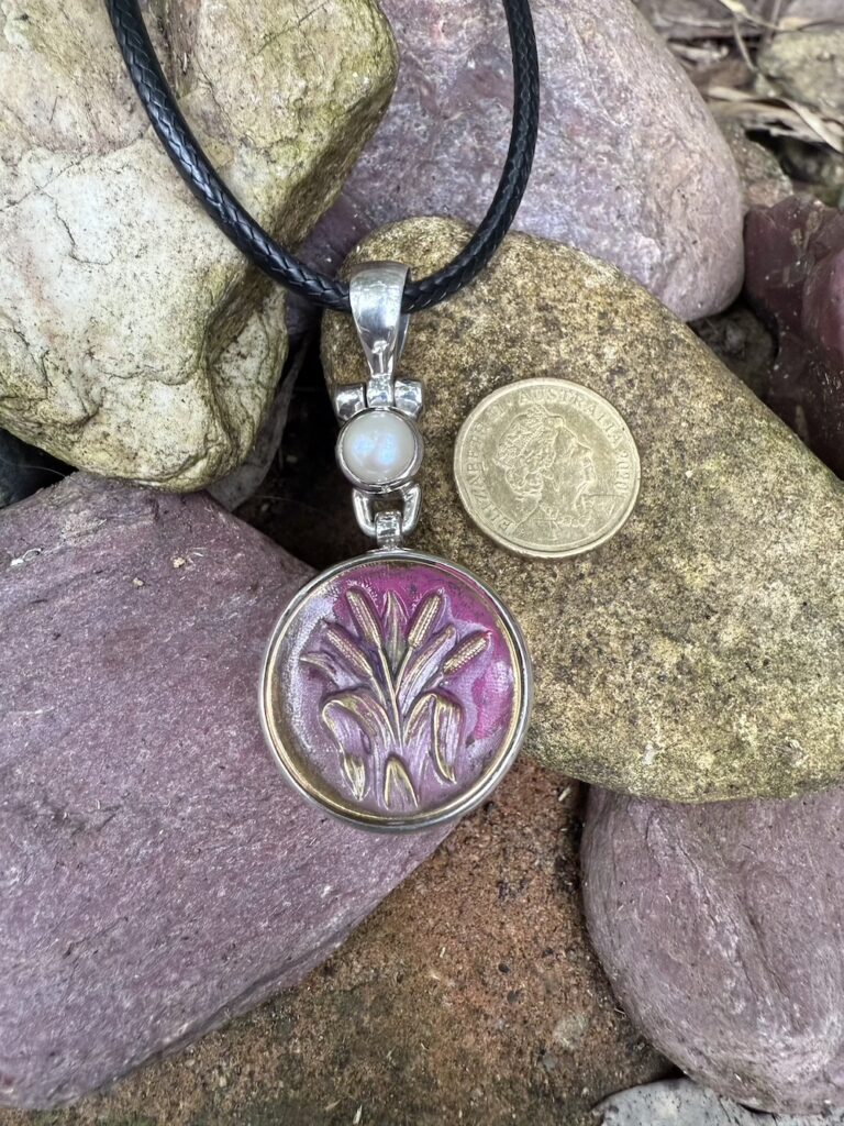 Remarkable 1800’s Era Antique Button & Pearl Pendant-Includes Black Leather Cord! #PP88