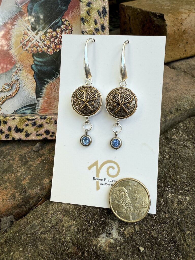 Tennis Lovers! Vintage Button & Blue Crystal Earrings! #SW33