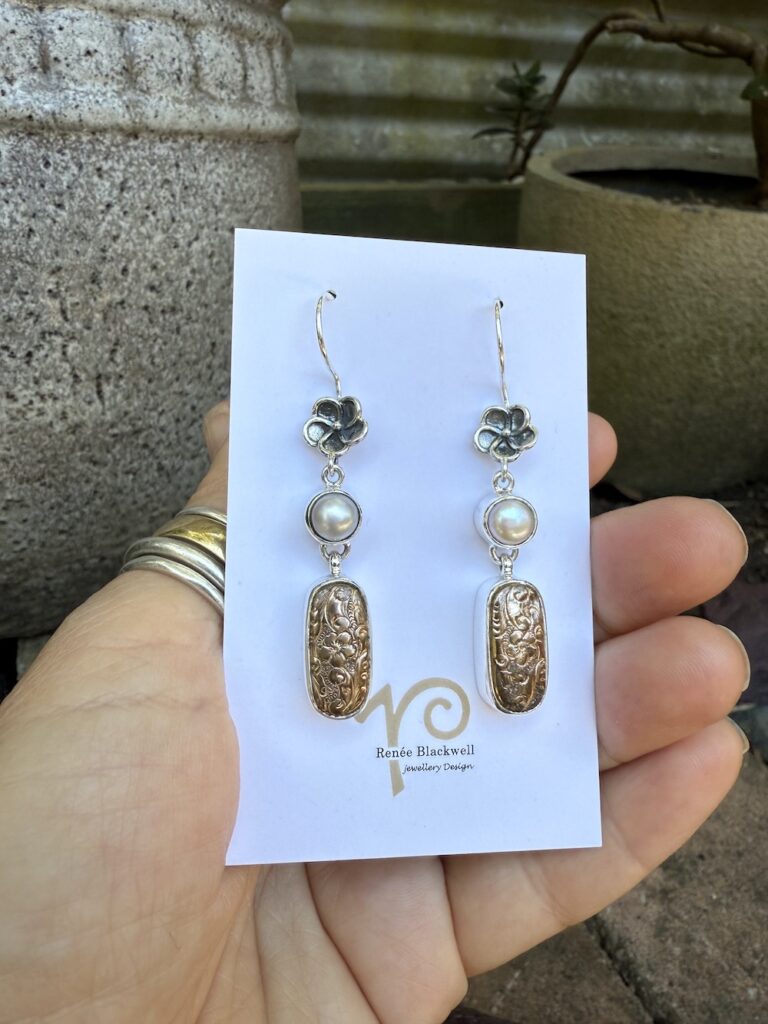 Phenomenal Antique Button & Pearl Earrings #NU733