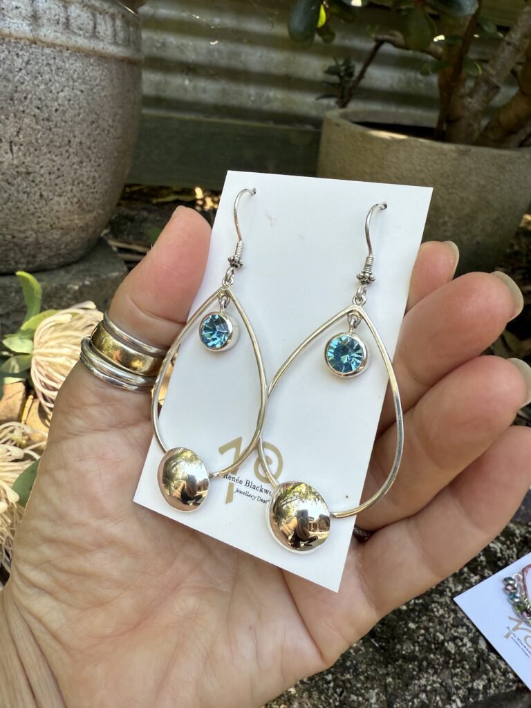 Sparkly Aqua Blue Crystal/Sterling Silver Statement Earrings #ABSE33
