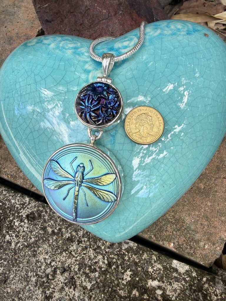 Stunning Vintage Button Statement Pendant-Includes Sterling Silver Chain! #SSQ29