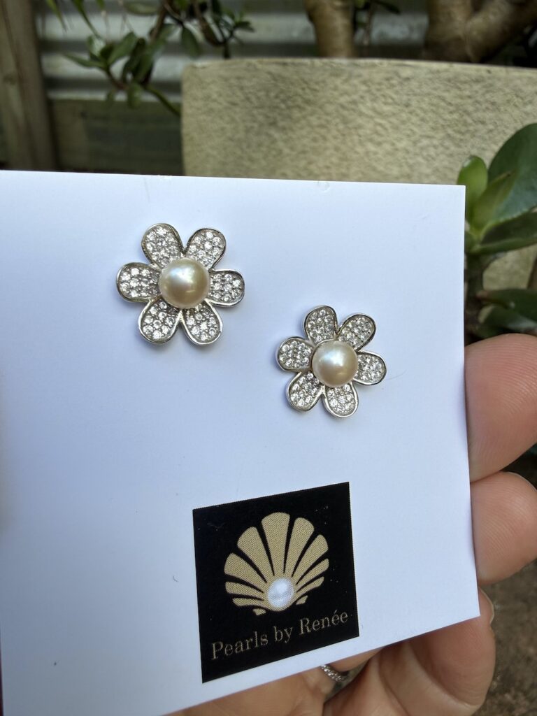 Creamy Fresh Water Pearl & Crystal Stud/Post Earrings #IAPEY