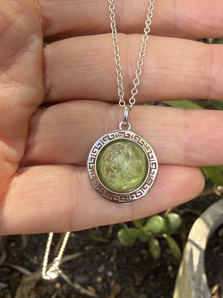 Charming Vintage Venetian Glass Button “Petite” Pendant-Includes Sterling Silver Chain! #KMS21