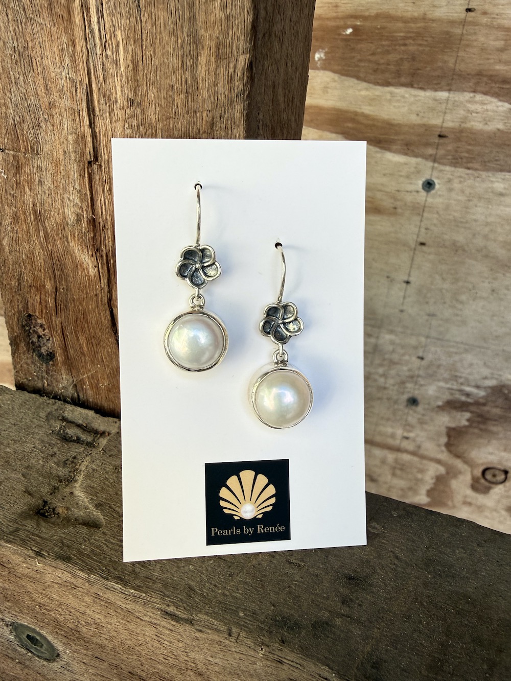 Renée says: “It’s no secret I love pearls, and these charming earrings are the very reason why! The beautifully matched, lustrous pearls dangle from the sterling silver ear wire with a detailed flower. The perfect pearl earring for dressy, casual or “in-between” wear. If you like what you see in the photos, I guarantee you will loves these as part of your jewellery wardrobe. Scroll thru’ images for up close peek at another earring treasure, fresh from the studio!”